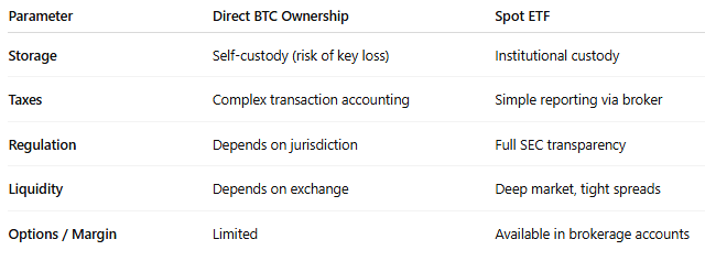 مزايا صناديق الاستثمار المتداولة في العملات المشفرة الفورية مقارنة بالملكية المباشرة