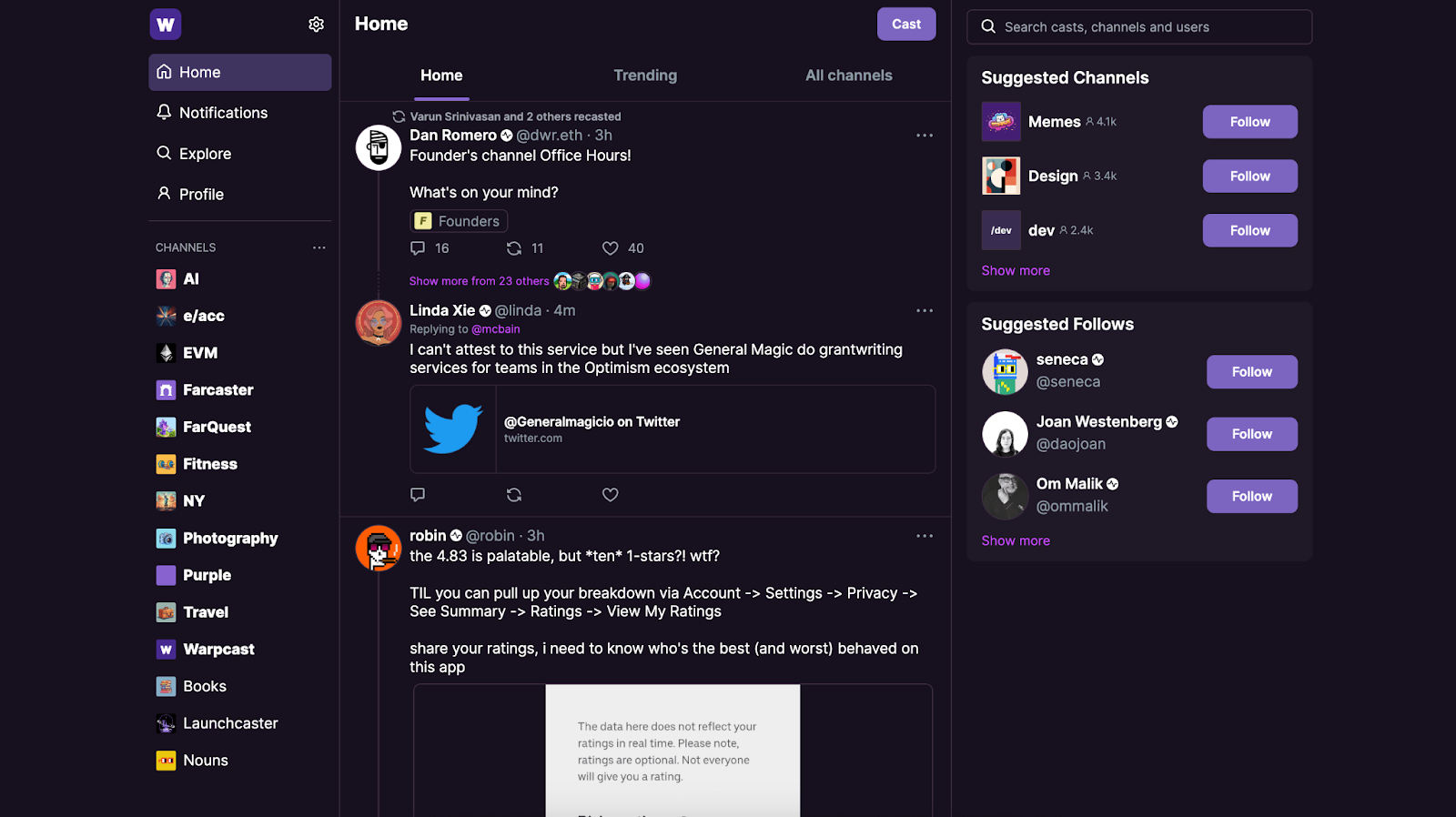 يعمل Farcaster بالفعل كشبكة اجتماعية أصلية للعملات المشفرة حيث: