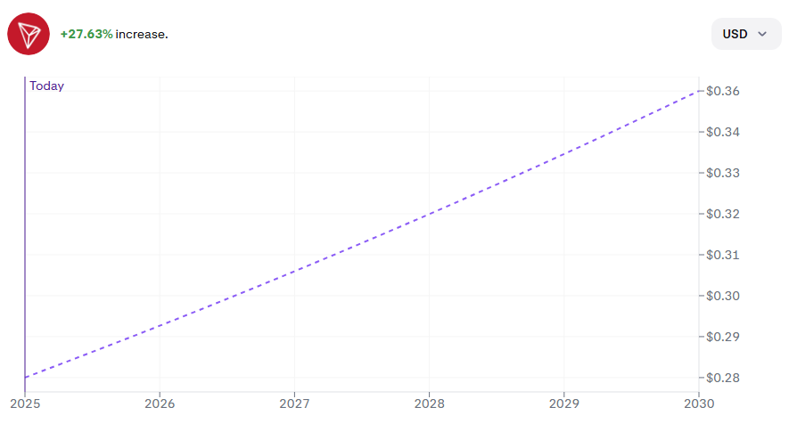 اعتبارًا من ديسمبر 2025، يتم تداول TRX بحوالي 0.28 دولار، وهو ما يبدو مثيرًا للسخرية بعض الشيء: تاريخيًا، كانت منطقة 0.30 دولار بمثابة السقف النفسي لـ Tron لسنوات. لكن السياق اليوم مختلف تمامًا.