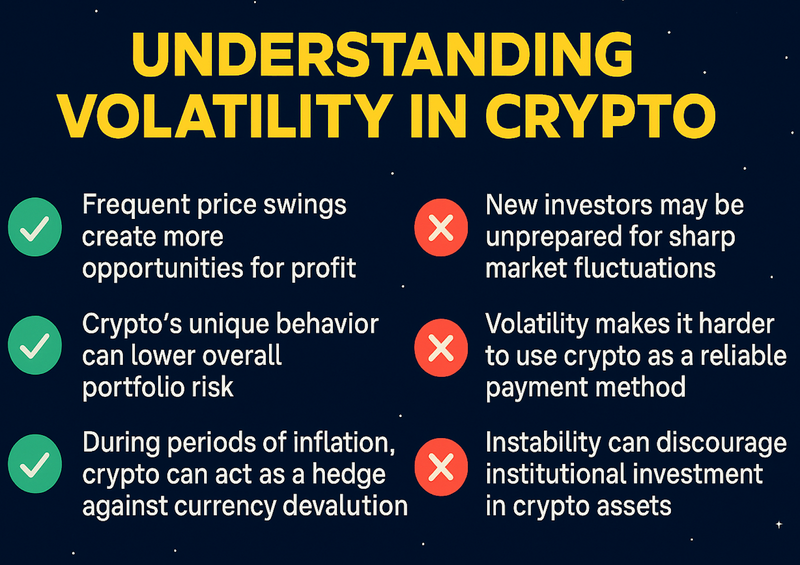 Crypto is younger, thinner, and runs 24/7. With fewer safety nets, even a late-night tweet or regulatory headline can ripple worldwide in minutes. What feels like background noise in stocks can become a tidal wave in crypto. So, cryptocurrency volatility really just comes with the territory.