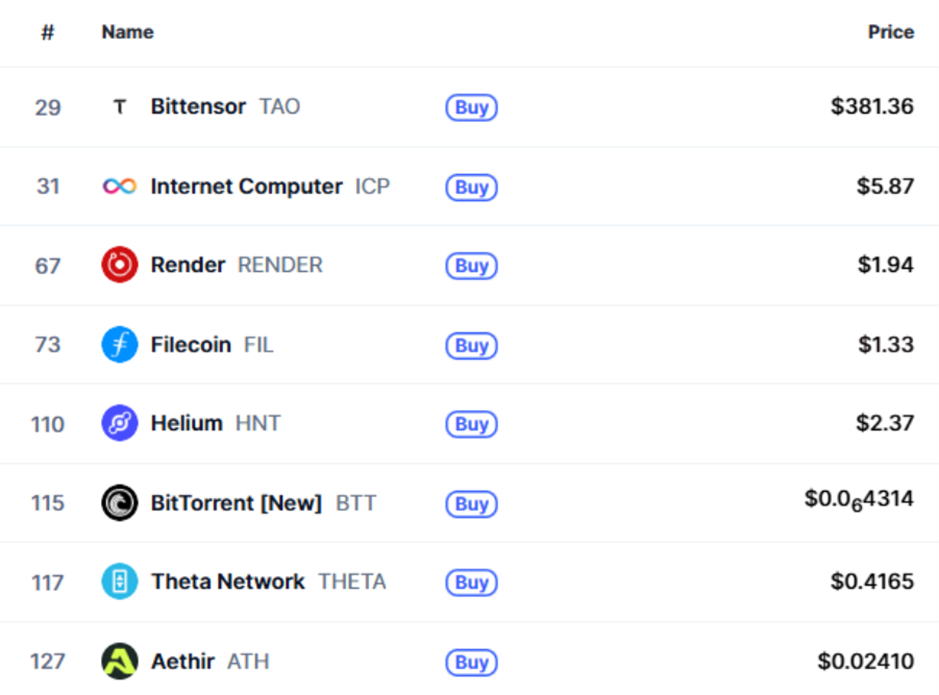 • CoinGecko — categories: AI, Cloud, Privacy• Coinmarketcap — categories: AI, Depin, Desci