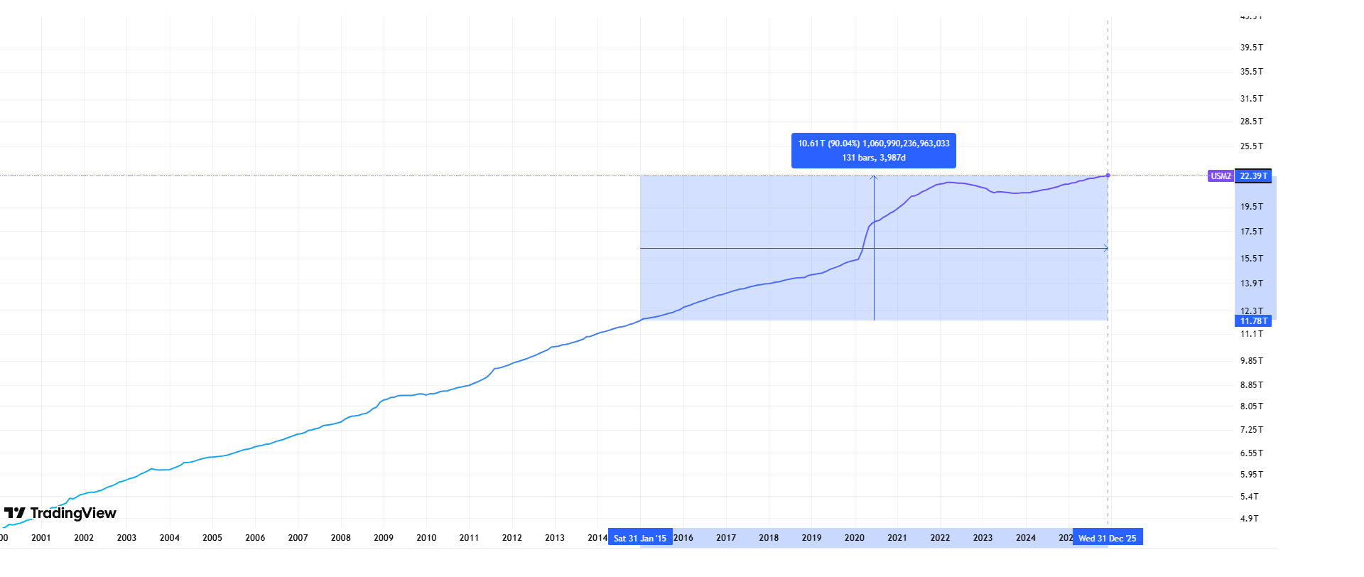 USD M2 Money Supply has Nearly Doubled over the Past Decade (Source: TradingView)