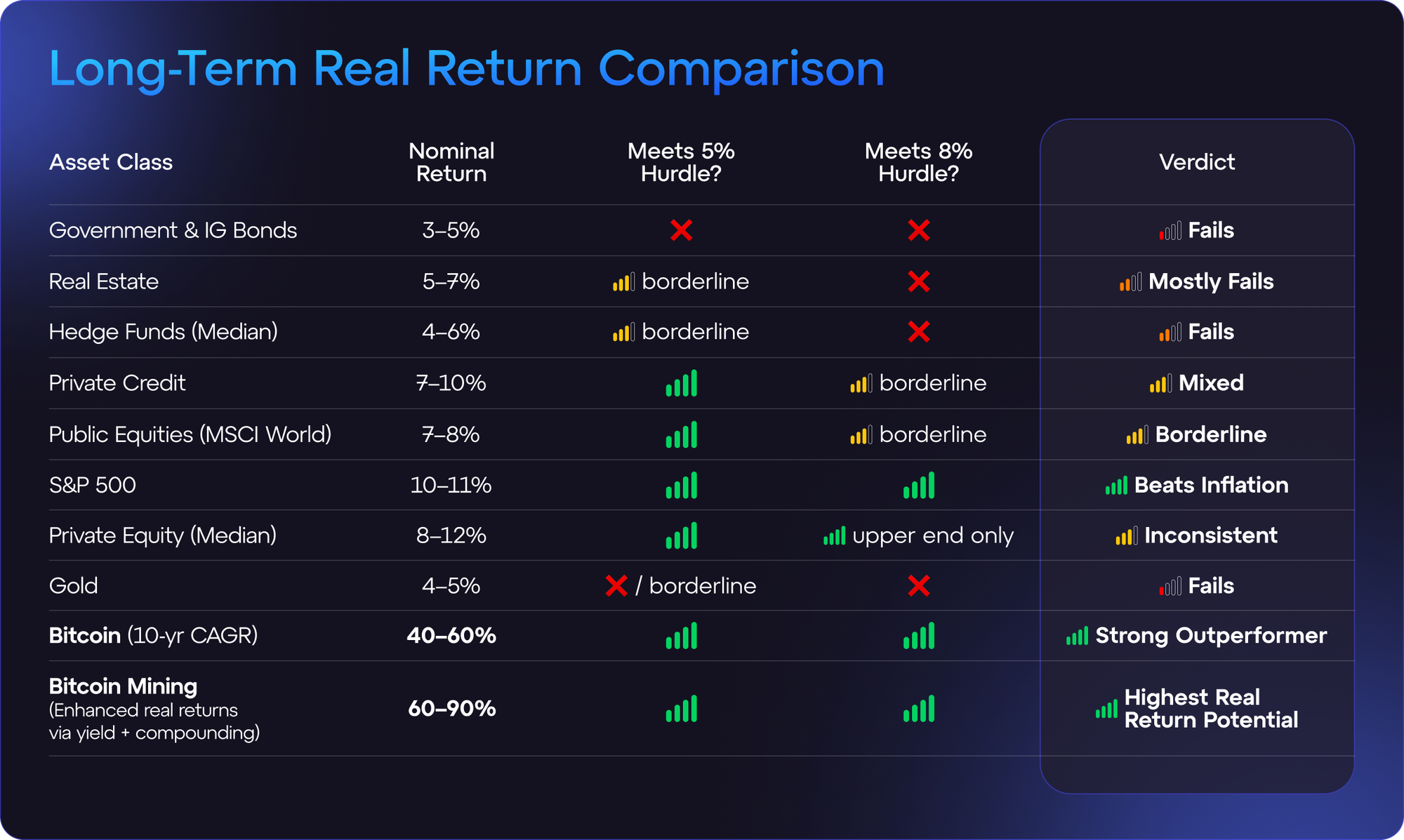For institutional investors, the core objective is not simply to grow capital, but to preserve and compound real purchasing power over time. In practice, that means consistently outperforming inflation after accounting for fees, taxes, and operational friction.