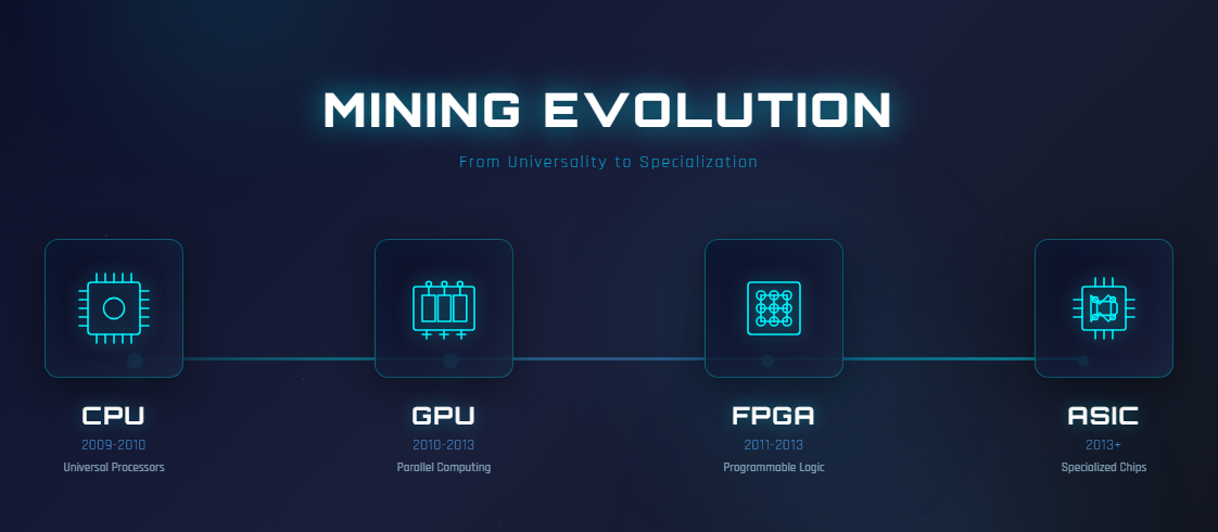 By 2011, it became obvious: the next optimization would be even more radical. If GPUs are more efficient than CPUs, what stops us from building a device that performs only SHA-256 calculations — and nothing else?