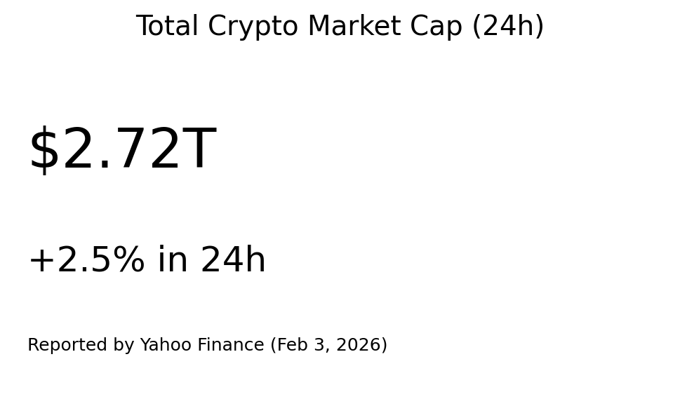 Total crypto market cap (original visual). Yahoo Finance reported $2.72T and +2.5% (Feb 3, 2026).