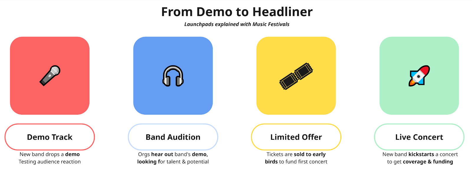 Uma plataforma de lançamento funciona como uma “pré-venda” ou “acesso antecipado” em plataformas de serviços, é como o Kickstarter, o Steam Early Access ou comprar um ingresso para um show com meses de antecedência. No caso da plataforma de lançamento de criptomoedas — seus tokens recém-adquiridos funcionam como um ingresso de acesso antecipado. O projeto recebe seus primeiros fundos de desenvolvimento e os usuários têm a chance de estar entre os primeiros participantes. Sem mágica, sem terminologia complicada — apenas um mecanismo de financiamento em estágio inicial.
