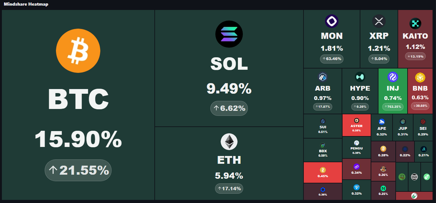 Hoje, o Crypto Mindshare desempenha cada vez mais esse papel. Na prática, ele atua como uma espécie de sinal pré-mercado para liquidez futura — um sinal alfa antecipado.