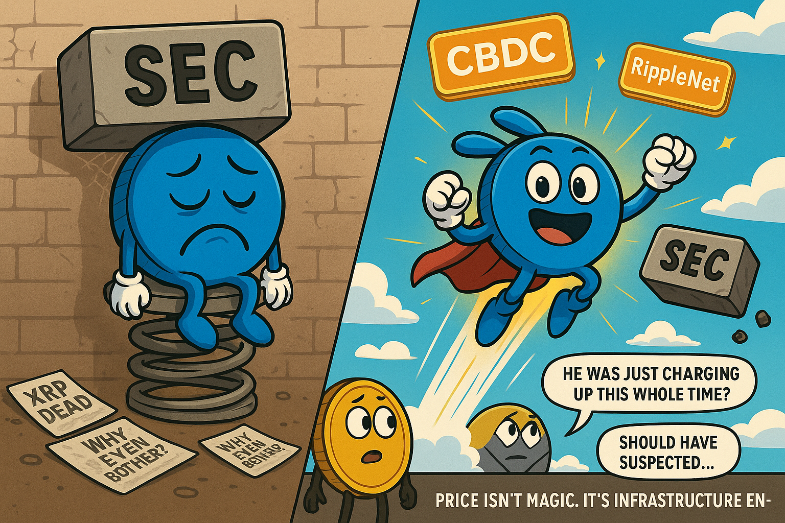 A RippleNet funciona, os bancos estão envolvidos, as batalhas jurídicas estão mais calmas — mas a adoção não decola. Nesse modelo, o XRP não está morto — ele está simplesmente inativo, esperando que alguém acione o interruptor institucional.