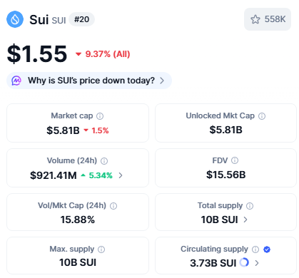 Este é o principal argumento pessimista contra o SUI — e não pode ser ignorado. O FDV (valorização totalmente diluída) tem sido alto para o SUI desde o início. Isso significa que: