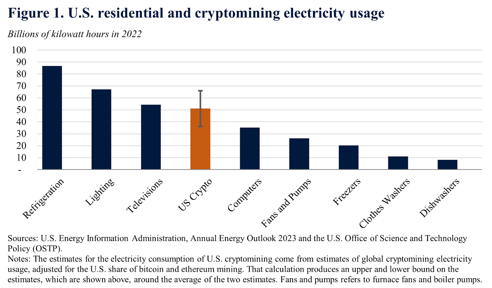 Nos EUA, a Administração de Informações sobre Energia (EIA) publicou uma análise em 2024 estimando a participação da mineração de criptomoedas no consumo nacional de energia e o impacto na rede elétrica. No âmbito governamental, a Casa Branca divulgou um relatório sobre os efeitos ambientais da mineração (água, ruído, lixo eletrônico), que foi amplamente resumido na mídia financeira.