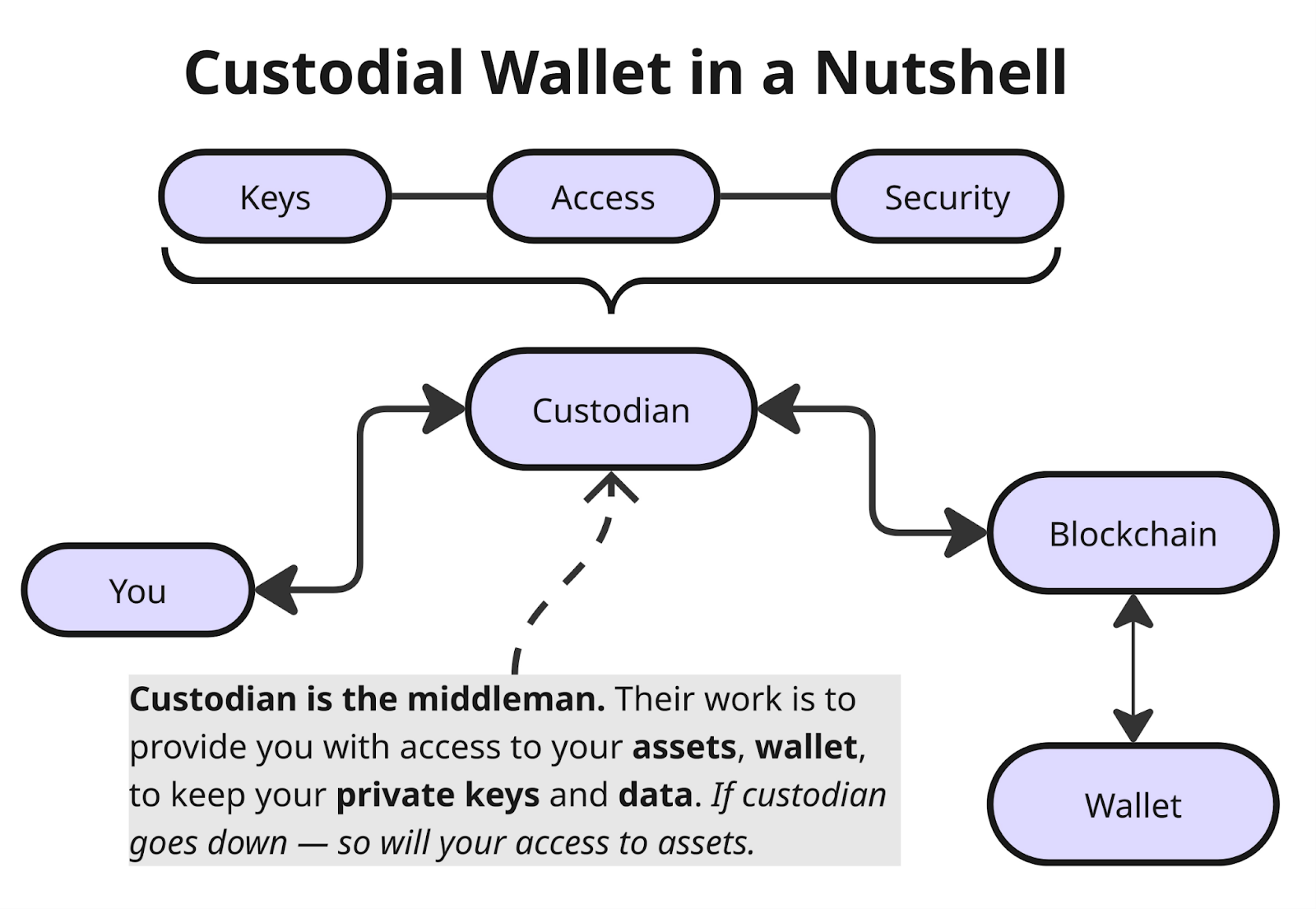 No entanto, essa conveniência vem com uma desvantagem: controle. O princípio básico das criptomoedas “sem suas chaves, sem suas moedas” se aplica aqui. Você confia no custodiante para proteger seus ativos e permitir que você os retire, o que pode ou não acontecer — não há 100% de garantia. Às vezes, como quando o custodiante da carteira é hackeado, os fundos são congelados ou roubados, e você não pode fazer nada a respeito, além de diversificar seus ativos.