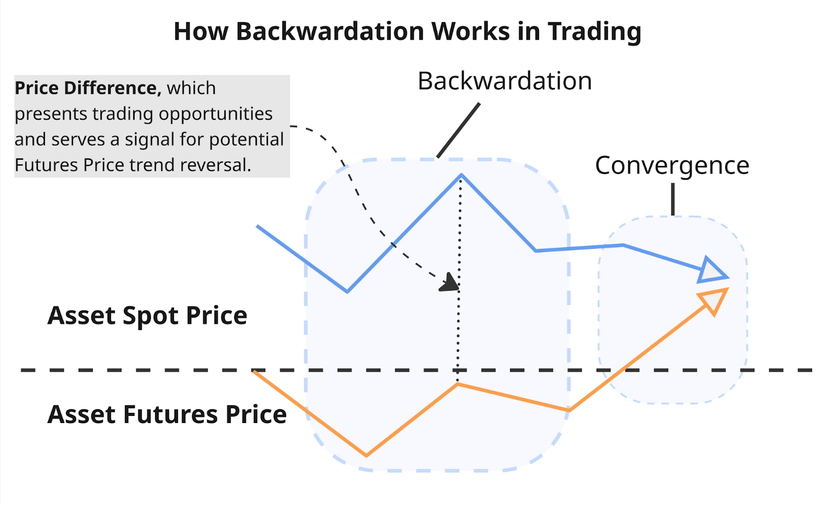 During backwardation, futures prices gradually increase, striving to match the spot price. Therefore, participants working in long positions gain an advantage due to the natural movement of the contract towards the current market level.