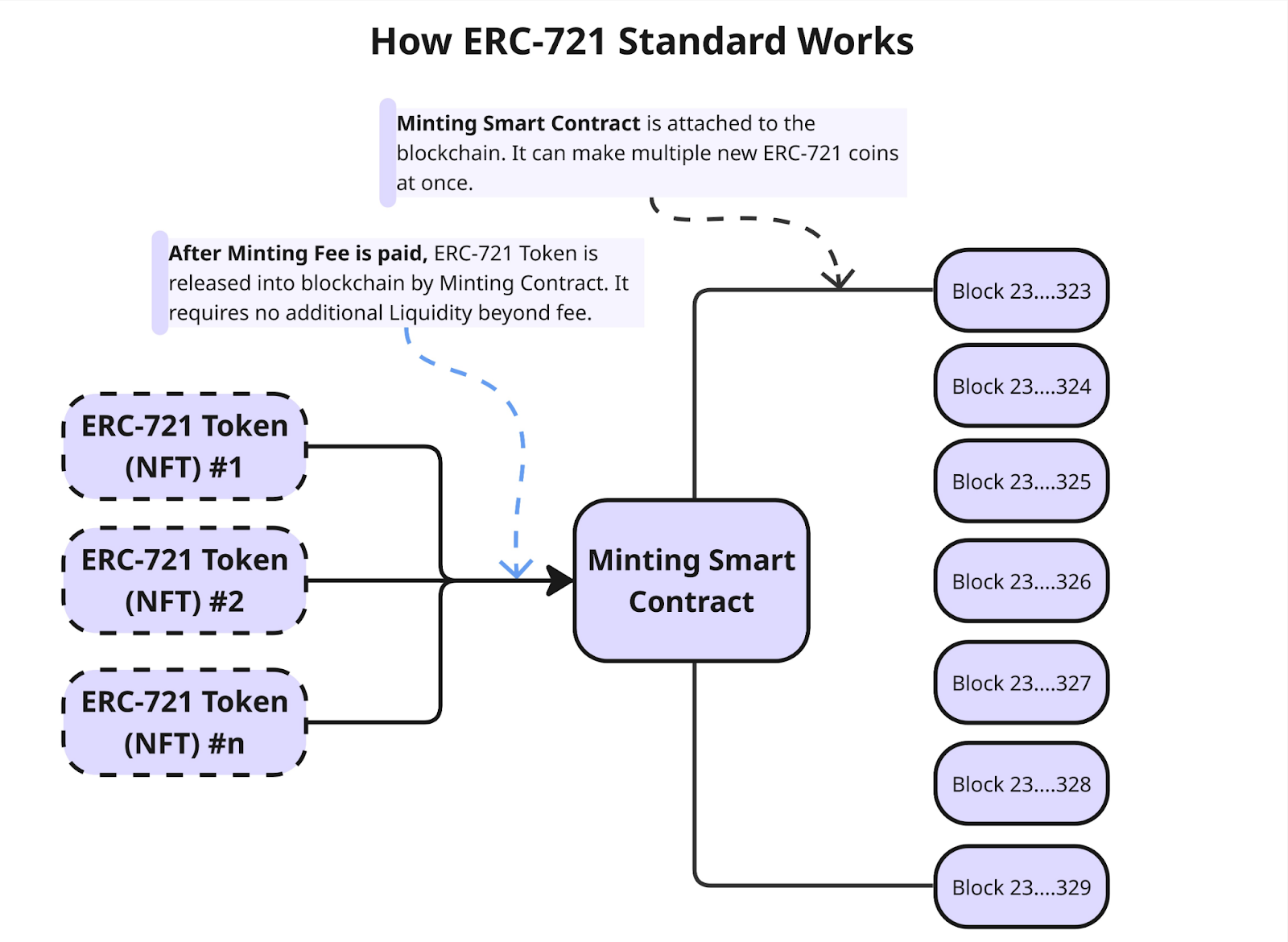 At the same time, much of the logic of ERC-721 replicates the approach of ERC-20. This is done intentionally so that tokens are convenient to use in everyday work: stored in regular crypto wallets and interacted with through exchanges and other services of the Ethereum ecosystem.