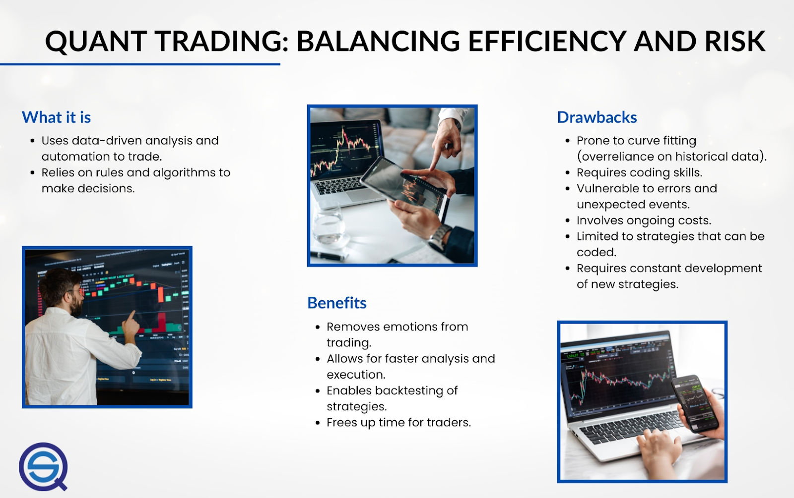 4. Ability to work with risks. Algorithms and mathematical models help reduce risks, but it is impossible to eliminate them completely. If an automated trading system is set up exclusively for safe operations, this limits potential profits. Successful quantitative traders know how to take calculated risks that lead to higher results over time.5. Understanding trading mechanisms. A truly strong quant is capable of developing their own trading approaches and methods. Using ready-made models is useful, but in a professional environment, the ability to create original strategies is highly valued. A deep understanding of trading principles is the basis for building effective, unique algorithms.
