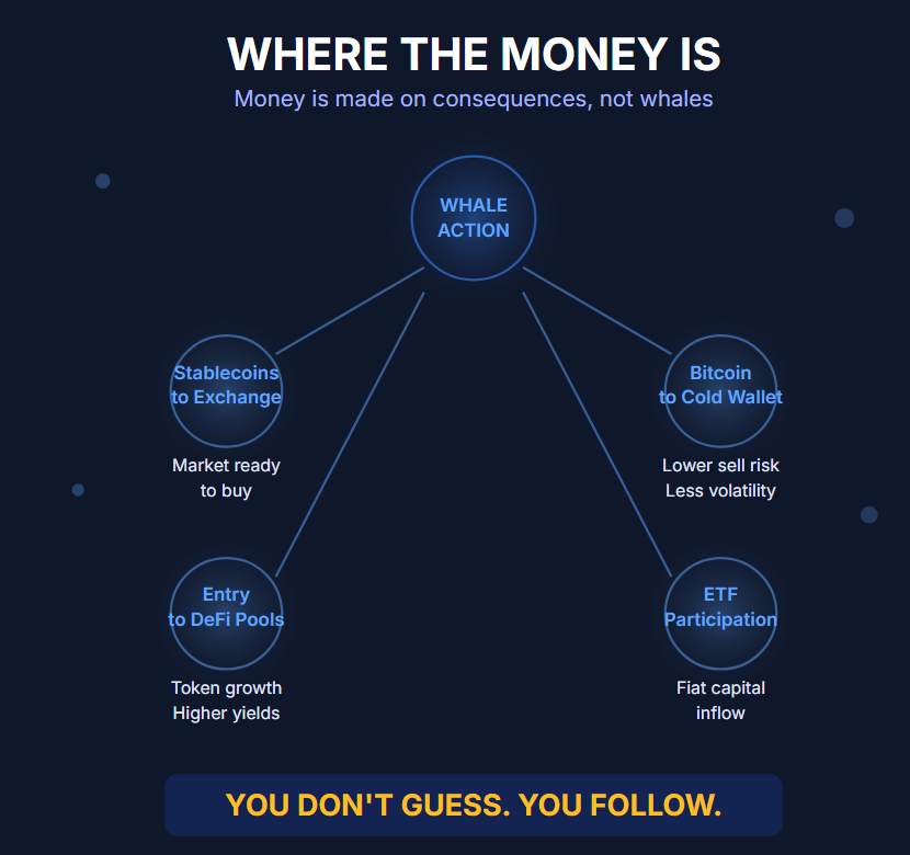 Kämpfen Sie nicht gegen Wale. Folgen Sie ihnen. Sie bewegen Märkte nicht, weil sie schlauer sind – sie bewegen Märkte, weil sie Geld haben. Und jetzt können Sie sehen, wohin dieses Geld fließt.