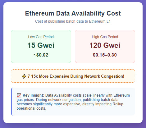 Y aquí está el detalle impactante: para la mayoría de las redes L2, DA termina consumiendo la mayor parte del presupuesto. Por eso todo el ecosistema L2 sigue de cerca los precios del gas de Ethereum: determinan directamente si un rollup puede operar de forma rentable o apenas cubrir costes.