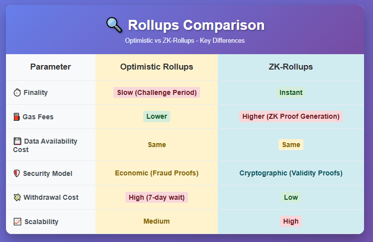Tabla comparativa de ZK-rollups y Optimistic rollups