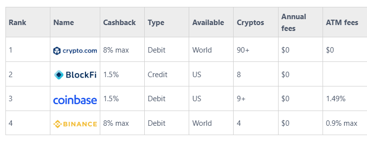 - Tarjetas Visa/Mastercard para pagar con criptomonedas