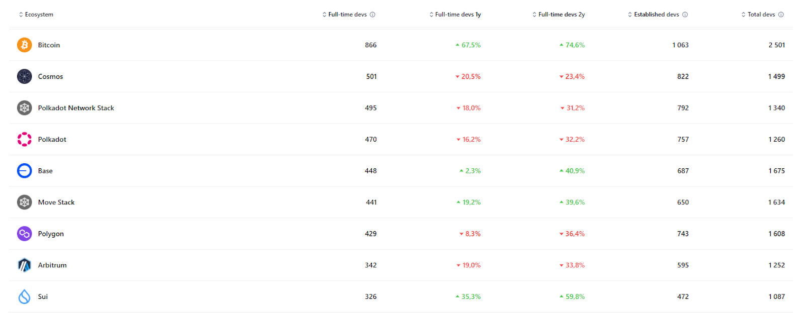 Una fuente a menudo infravalorada: la actividad de los desarrolladores, la frecuencia de commits y los pull requests sirven como señal del ritmo de desarrollo del producto.