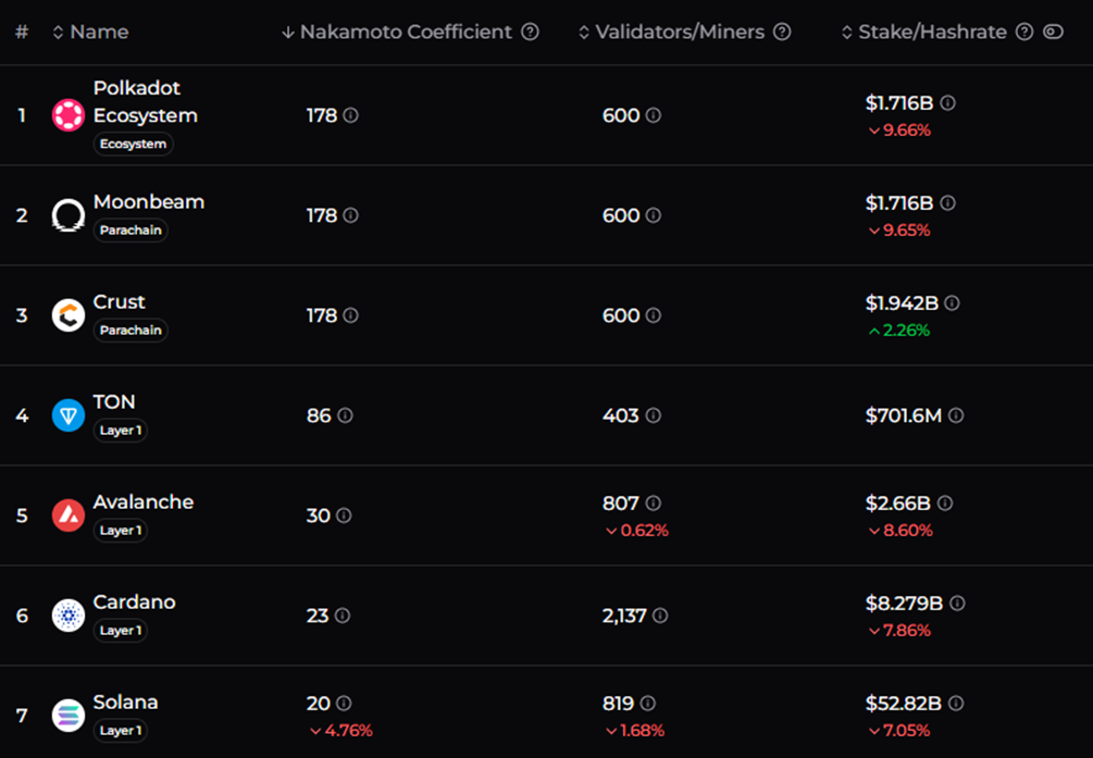 Coefficient de Nakamoto — le nombre minimum de participants pouvant contrôler le réseau :