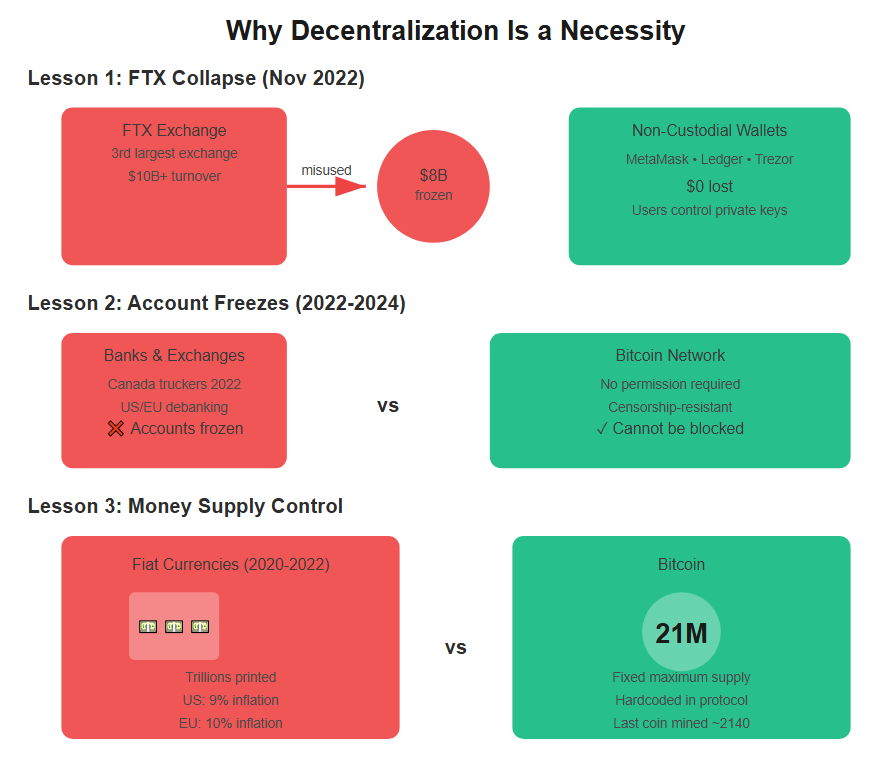 La décentralisation n'est pas seulement une technologie ou un concept philosophique. C'est un outil pratique pour protéger le capital dans un monde où les institutions centralisées font régulièrement preuve de vulnérabilité, de corruption ou d'incompétence.