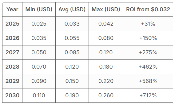 Un résultat plus modéré, mais néanmoins très solide. Cette fourchette est mentionnée par CCN et Bitget dans leurs prévisions à long terme. Ici, l'accent est mis non plus sur le battage médiatique, mais sur le développement systématique de l'écosystème.