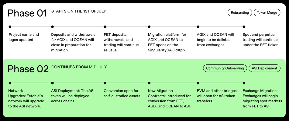 L'esempio più chiaro è l'ASI Alliance, dove FET, AGIX e OCEAN dovevano fondersi in un unico token: ASI.