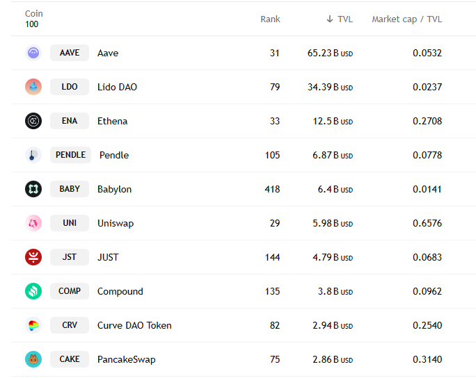- Confronta MC/TVL: se la capitalizzazione è 2-3 volte inferiore al TVL, questo è un segnale.