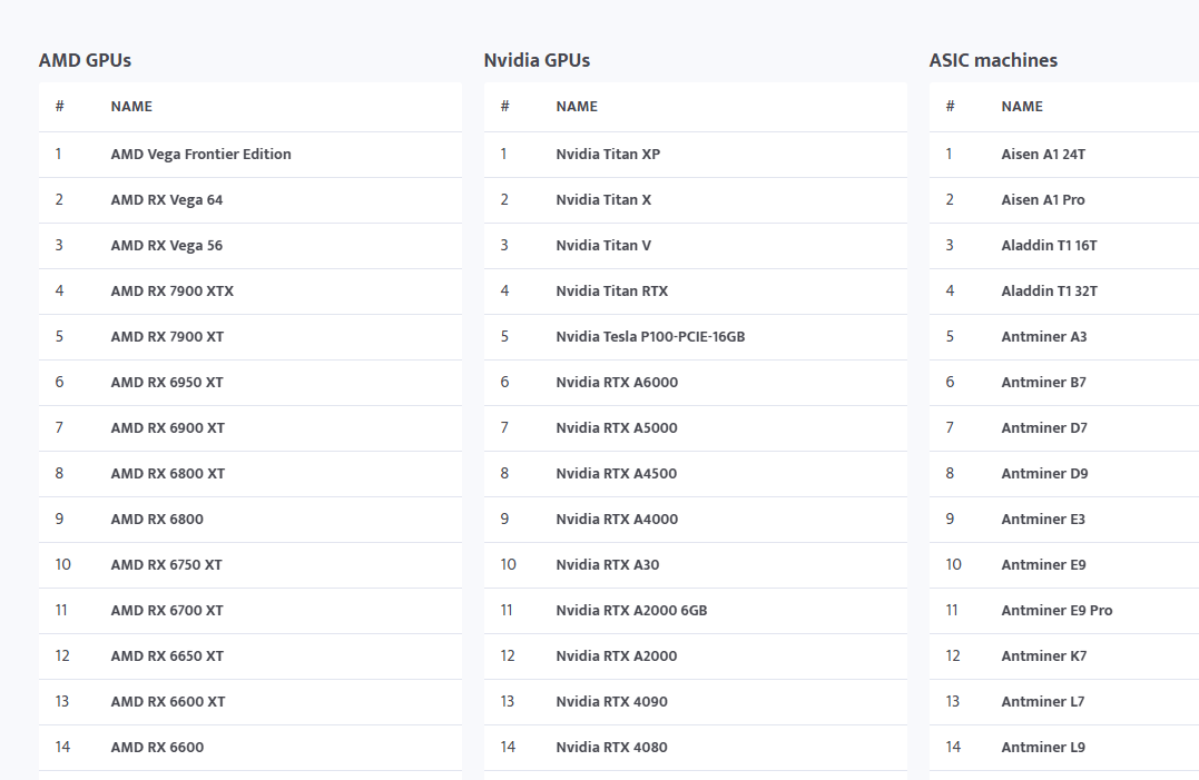 È possibile confrontare i modelli ASIC e l'efficienza su piattaforme come Minerstat: