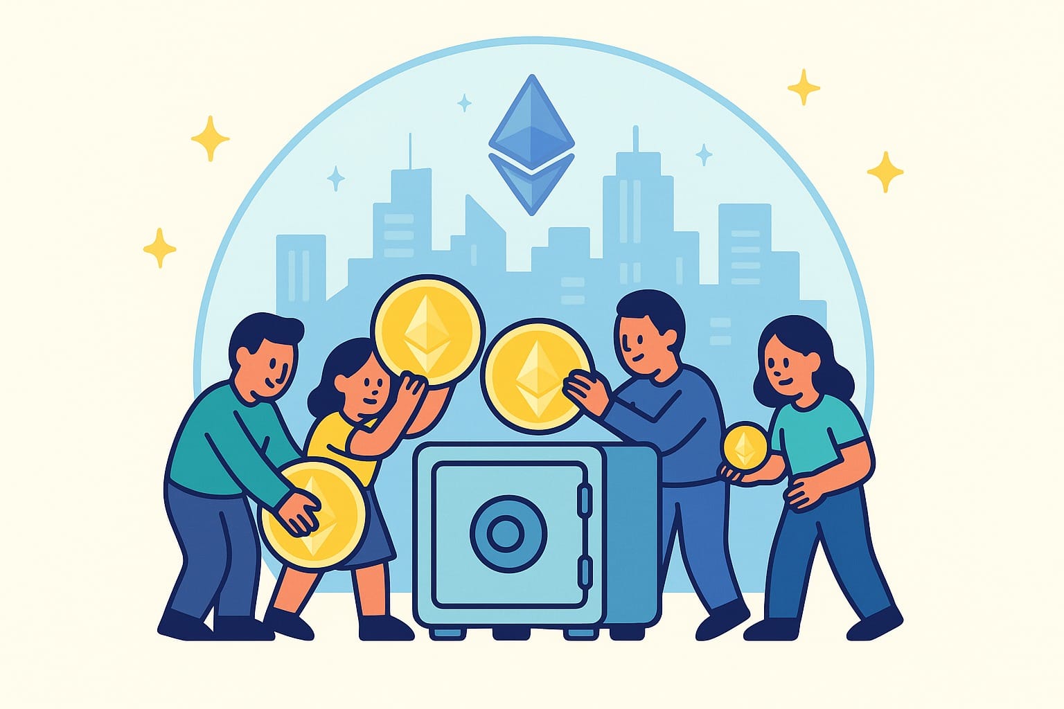 専門用語を剥ぎ取れば、ステーキングは驚くほど地に足がついた仕組みだ。警備員を雇わず、代わりに住民に安全への関心を示す証拠として保証金を預けるよう求める都市を想像してほしい。その見返りとして、市民は都市の運営収入の一部を受け取る。これがプルーフ・オブ・ステークに移行した後のイーサリアムの機能そのものだ。