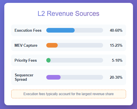 L2 수익 = 수익 (수수료 + MEV + 시퀀서 스프레드) - 비용 (데이터 가용성 + 증명 + 인프라).