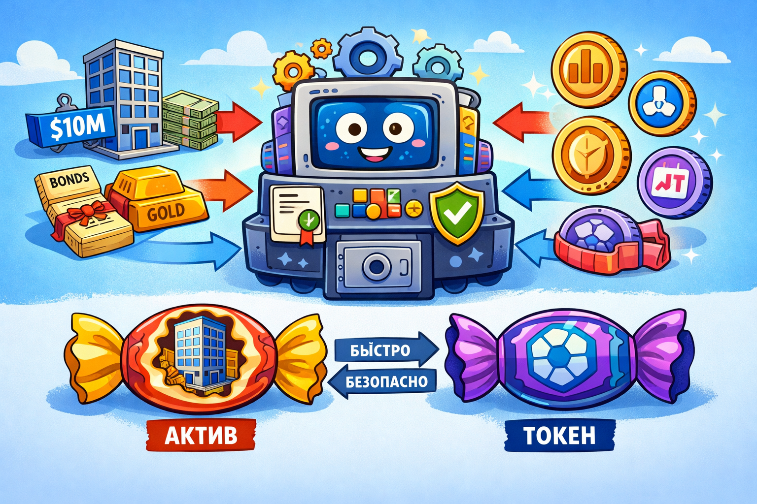 Аналогия из жизни: Представьте конфету. Сам актив — это начинка (например, офисное здание за $10 млн). Токен — это обёртка. Вы не едите обёртку, но именно она позволяет конфету продать, передать или обменять мгновенно и безопасно.